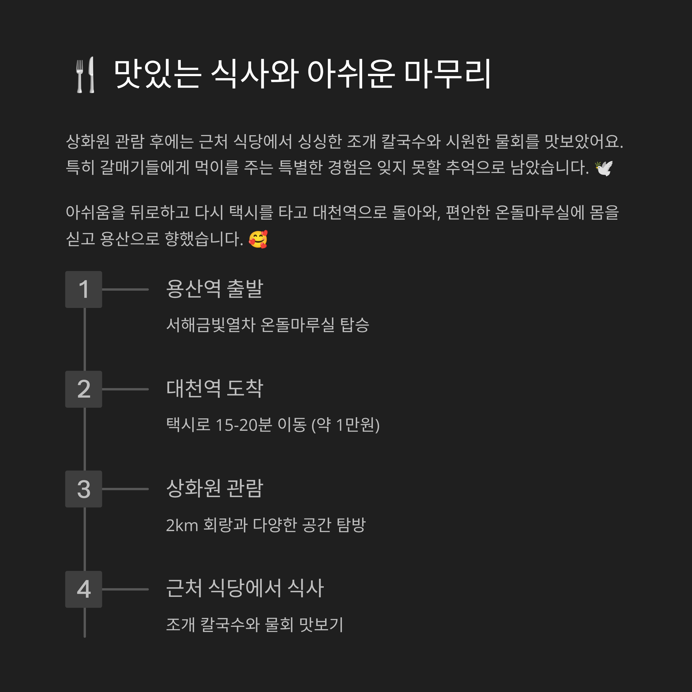 아쉬움을 뒤로하고 다시 택시를 타고 대천역으로 돌아와,