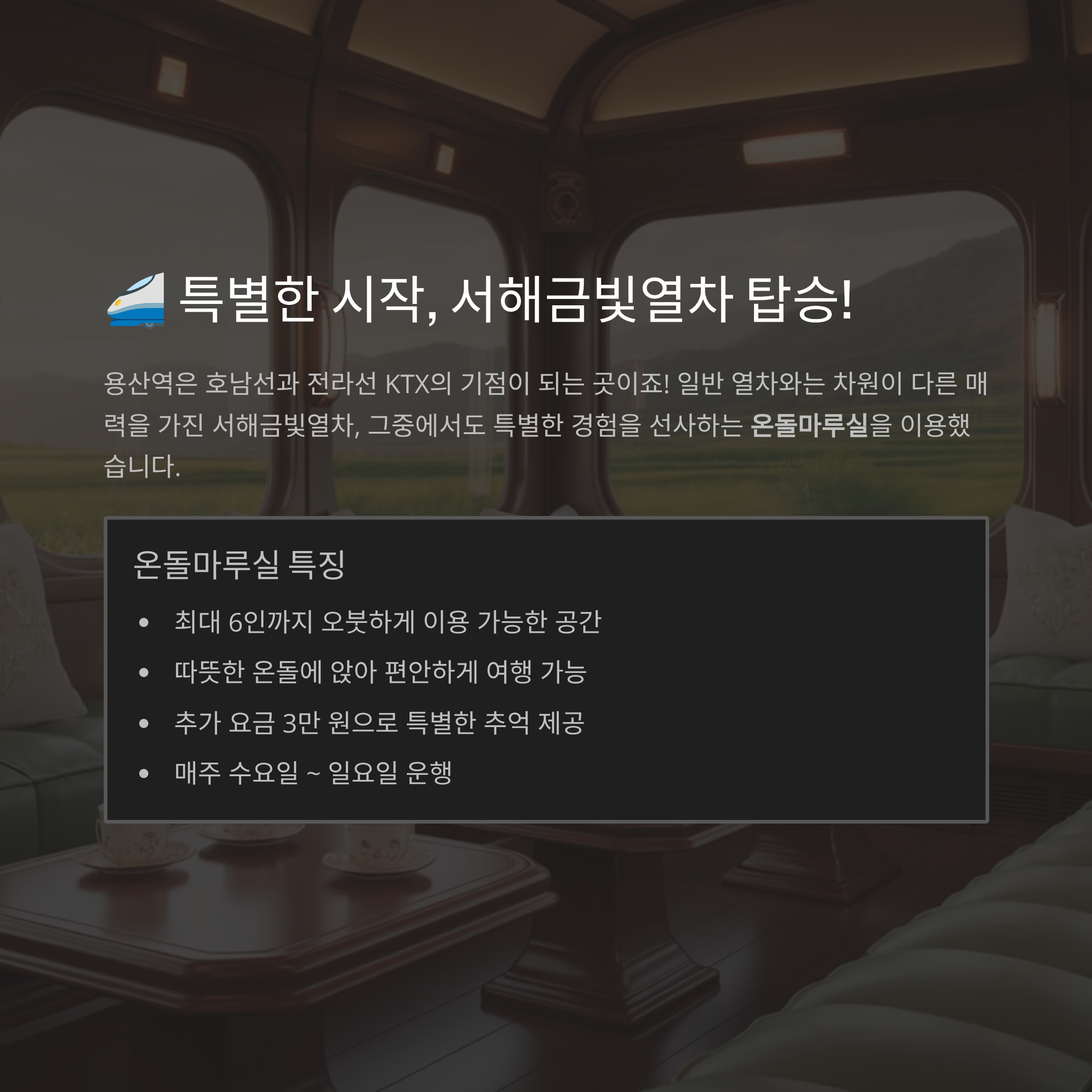 ✨ 오늘은 용산역에서 출발하는 서해금빛열차를 타고