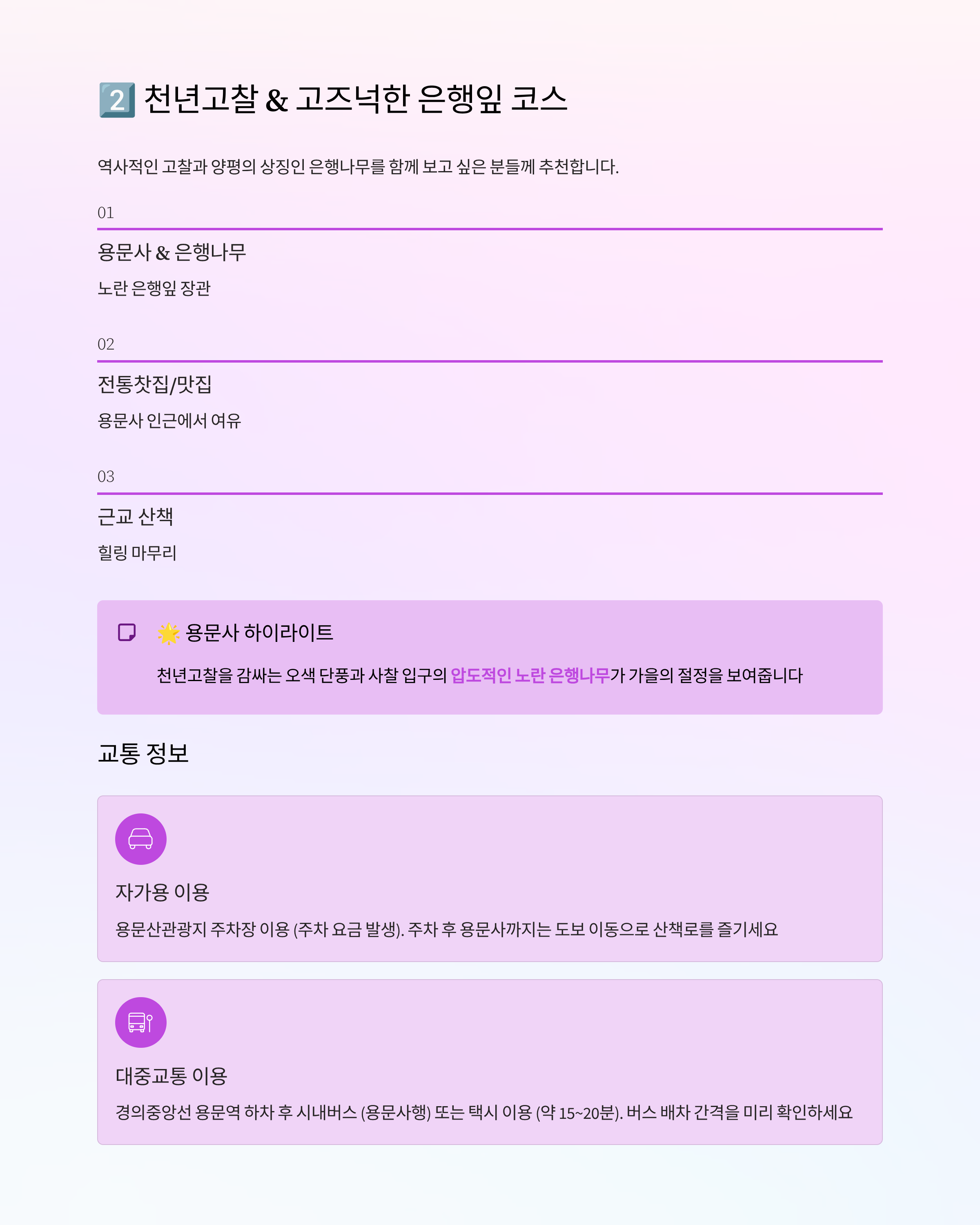 2️⃣ 천년고찰 & 고즈넉한 은행잎 코스