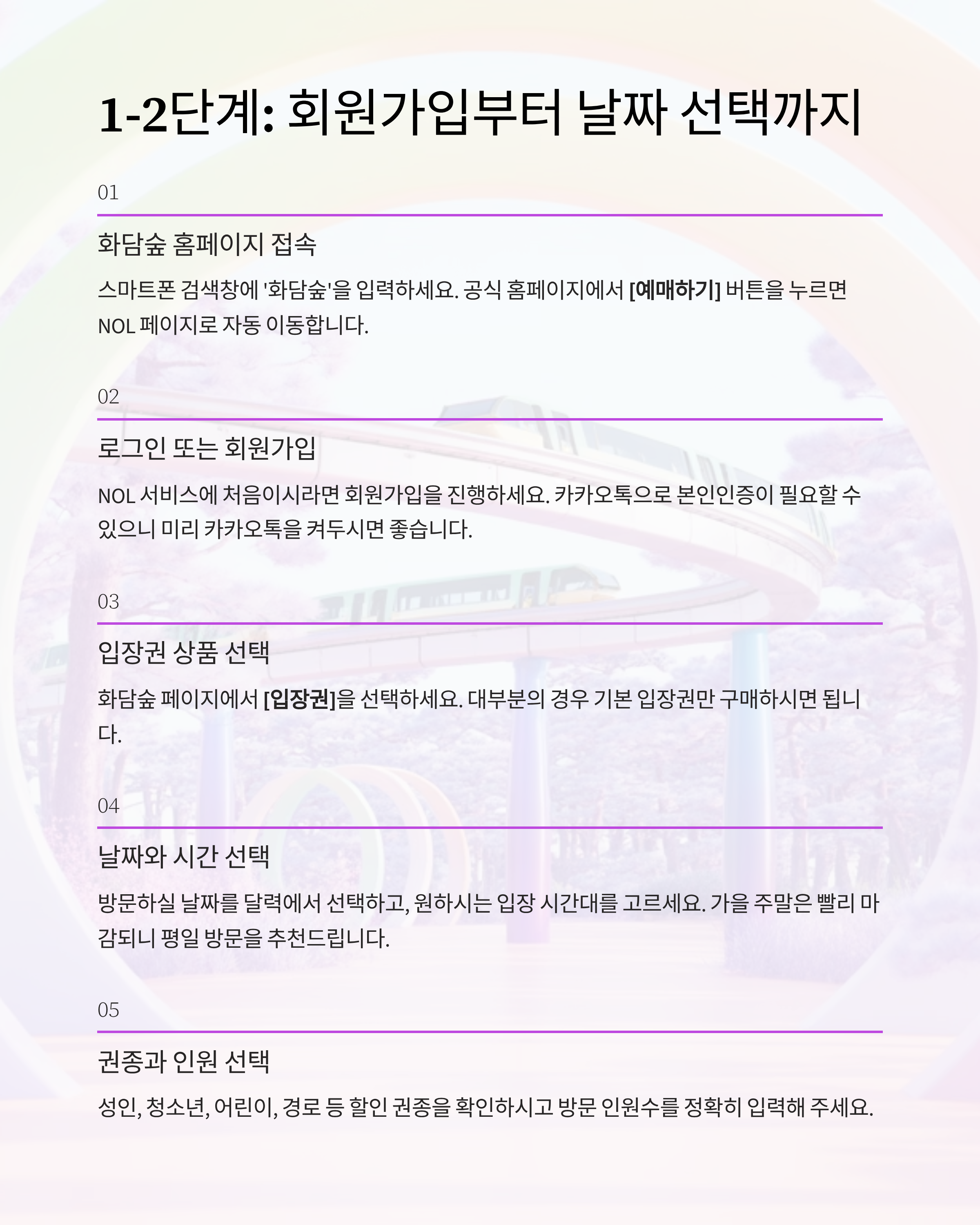 "나는 스마트폰 조작이 서툰데...", "예약이 너무 복잡하지 않을까?" 걱정하시는 중장년층 분들을 위해! 가장 쉽고 빠르게, 모바일로 화담숲 입장권 예약하는 방법을 단계별로 자세히 알려드릴게요.