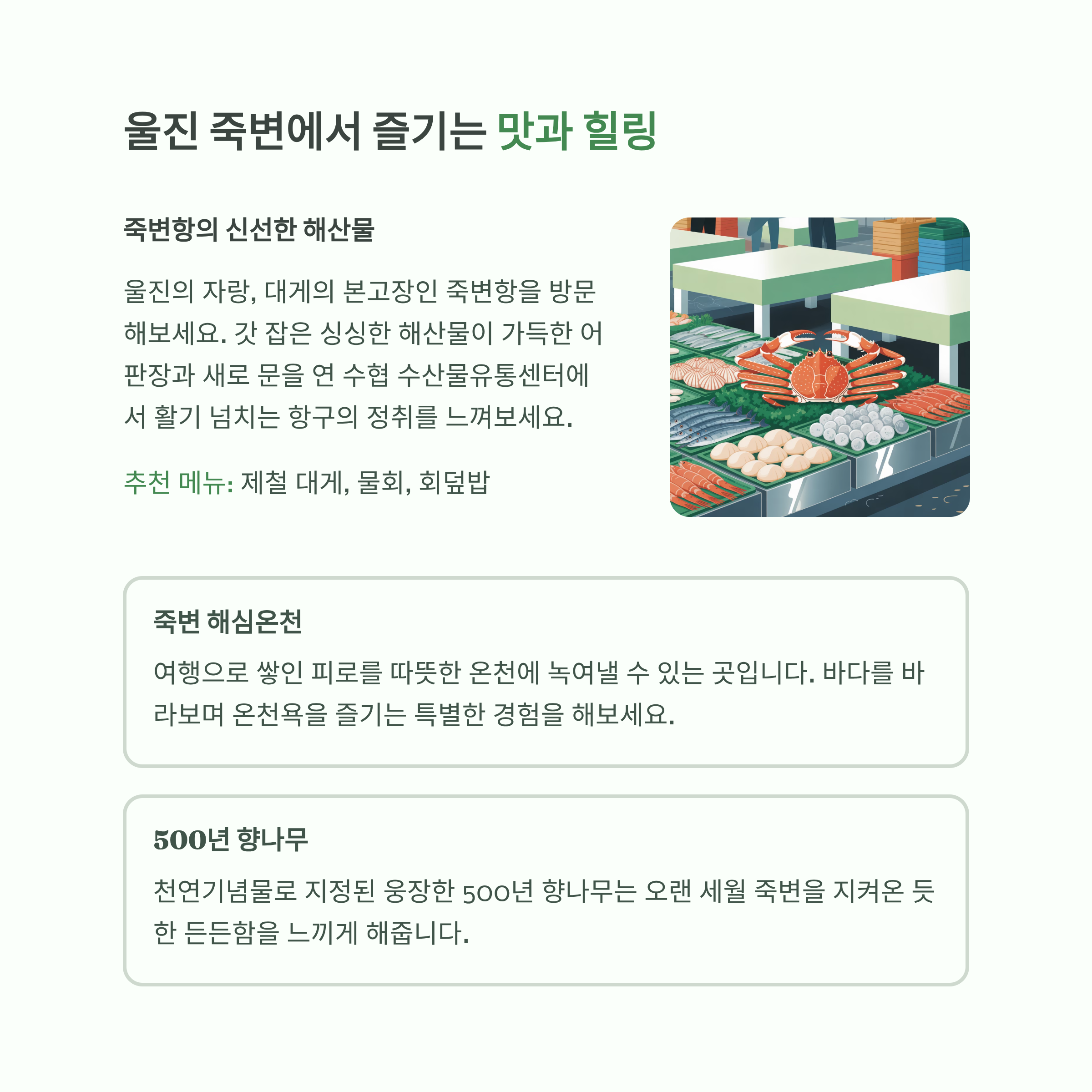 • 죽변항: 울진의 자랑, 대게의 본고장인 죽변항을 그냥 지나칠 수 없죠.