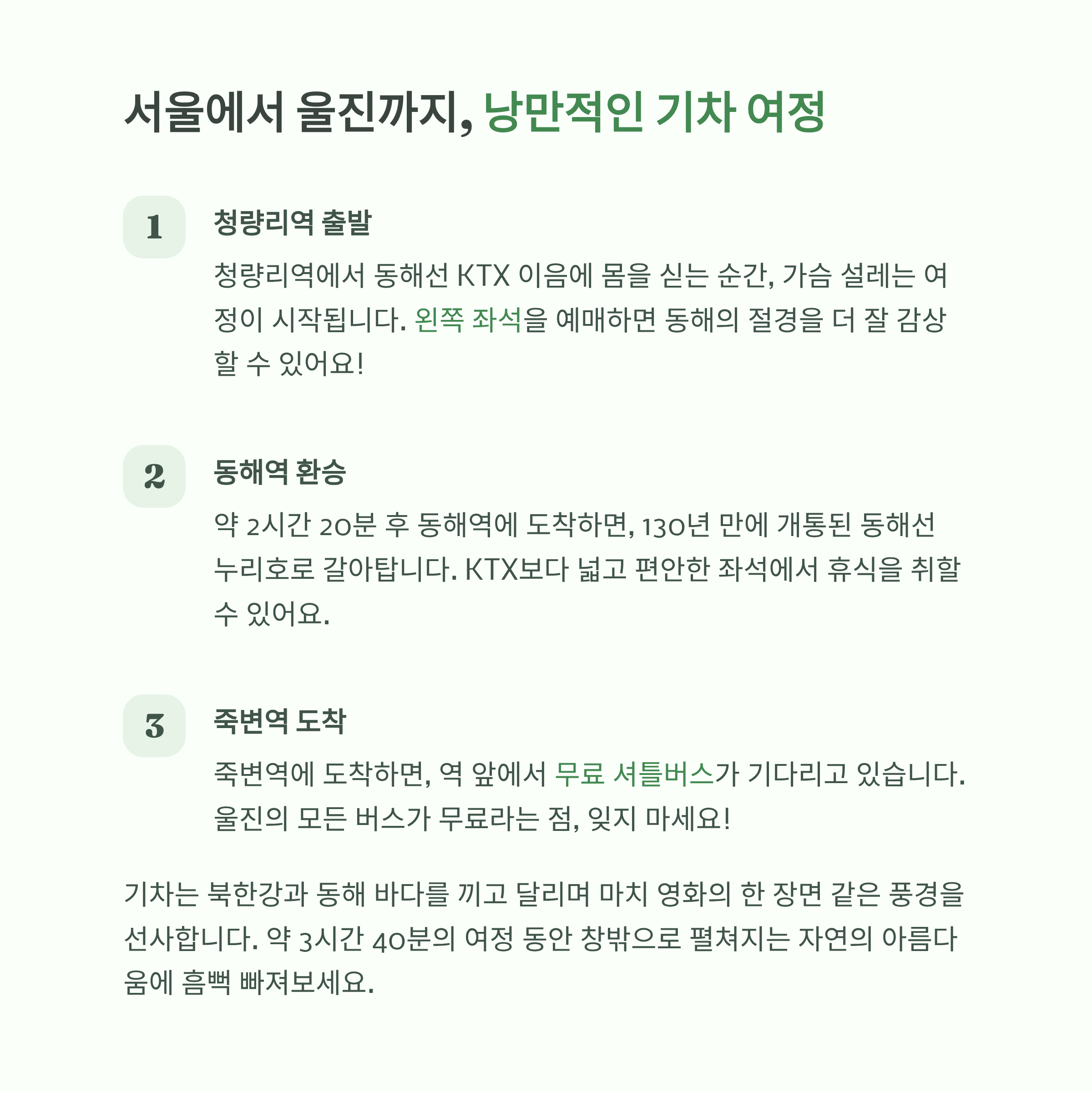 1. 서울에서 울진까지, 가장 낭만적인 이동 방법