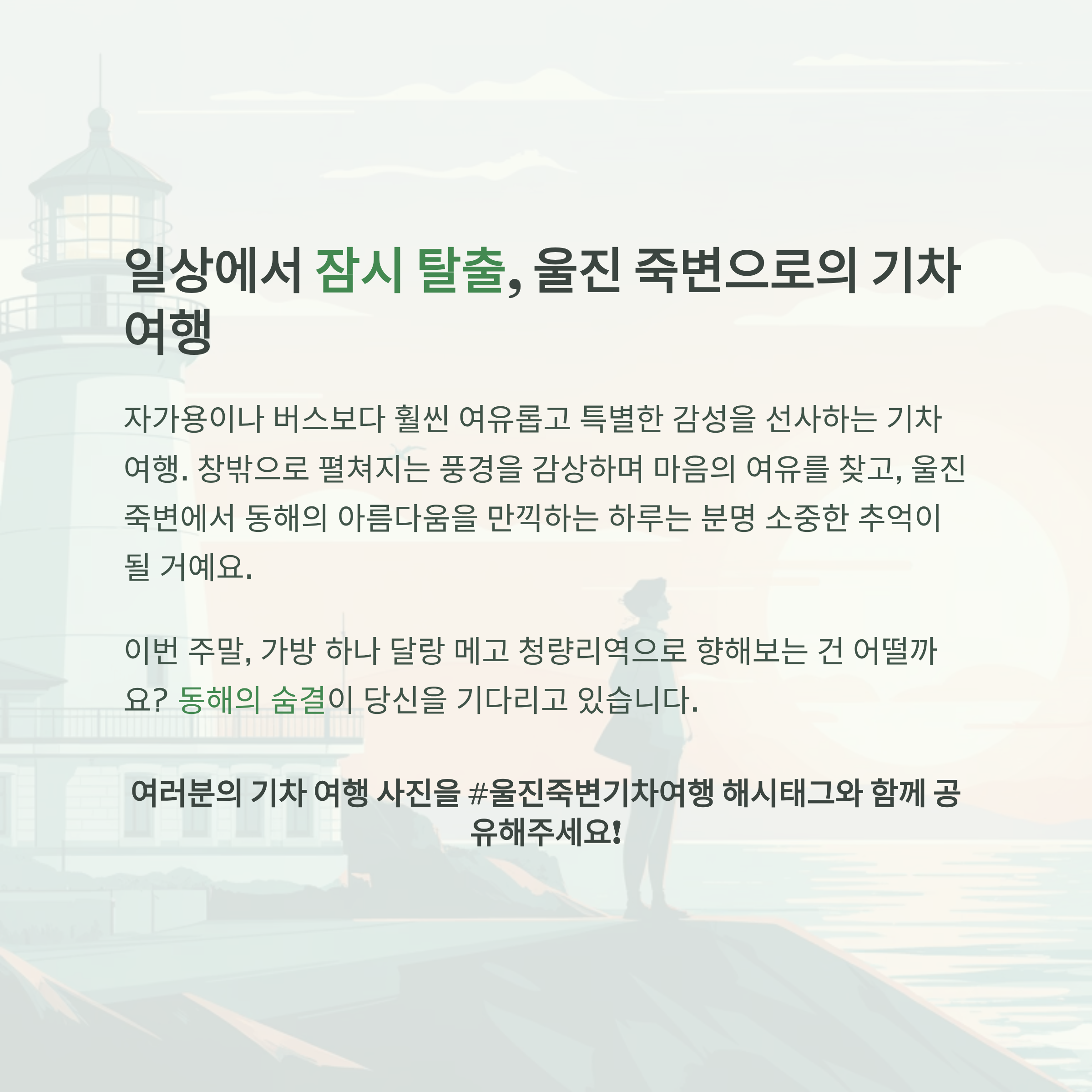 KTX 이음과 동해선으로 떠나는 울진 죽변 여행: 동해의 숨결을 만끽하는 당일치기 기차 여행 코스